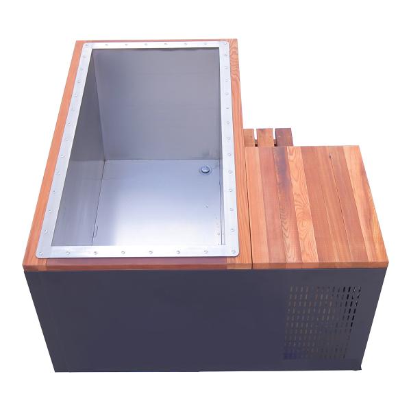 Bồn ngâm lạnh BOXER CT-010 kích thước nhỏ gọn của chúng tôi, lý tưởng cho những ai muốn trải nghiệm ngâm mình trong nước lạnh nhưng lại có không gian hạn chế. Bồn được chế tác từ cùng chất liệu với Bồn tắm đá lạnh cao cấp cỡ lớn của chúng tôi. Bồn tắm bằng thép không gỉ với các chi tiết gỗ tuyết tùng đỏ tạo nên trải nghiệm tắm đá hoàn hảo.